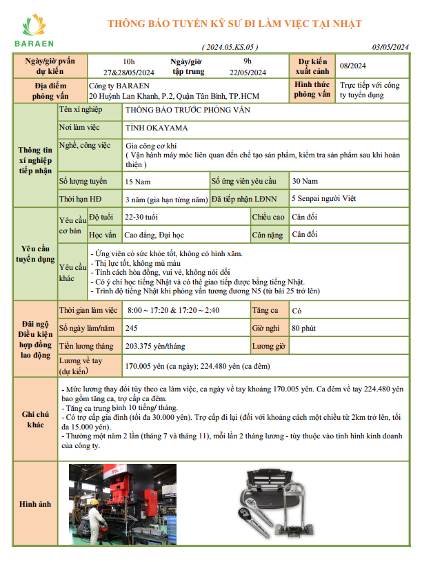 TUYỂN 15 NAM KỸ SƯ CƠ KHÍ