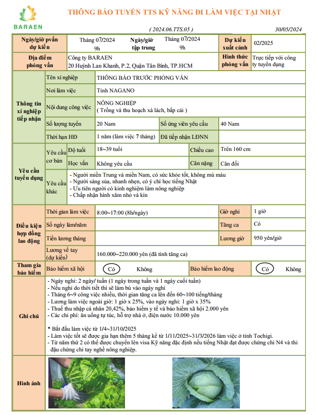 TUYỂN 20 NAM THỰC TẬP SINH NÔNG NGHIỆP
