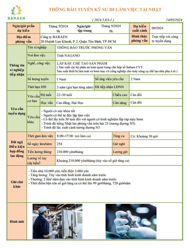 TUYỂN 1 NAM KỸ SƯ LẮP RÁP VÀ CHẾ TẠO SẢN PHẨM