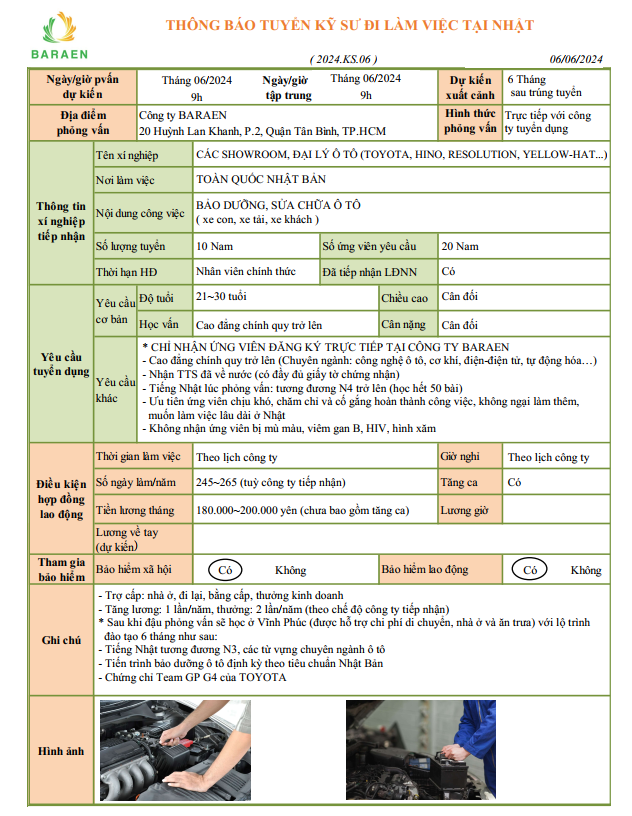 自動車メンテナンスエンジニア・男10名・募集中